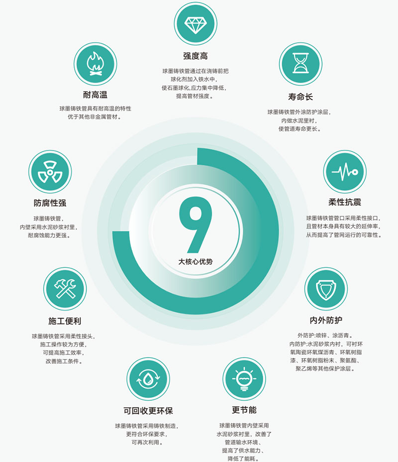 球墨鑄鐵管優勢: