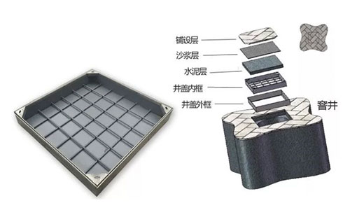 5.防盜:井蓋在井圈下設置了防盜暗盒、開啟折板,替代了防盜鏈,起到了防盜作用。